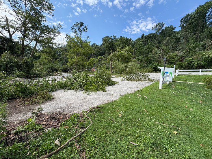 Having climbed the fields of shattered and fallen trees and listened to the chainsaws for days on end, the team at Historic Yellow Springs feels incredibly fortunate for the relatively limited damage to buildings that occurred with the intense storm on July 8th. Swaths of healthy leafy trees were torn and twisted from their bases by forces difficult to comprehend. All told, they estimate nearly one hundred trees were destroyed or badly damaged across the property. The cleanup efforts will continue for months.